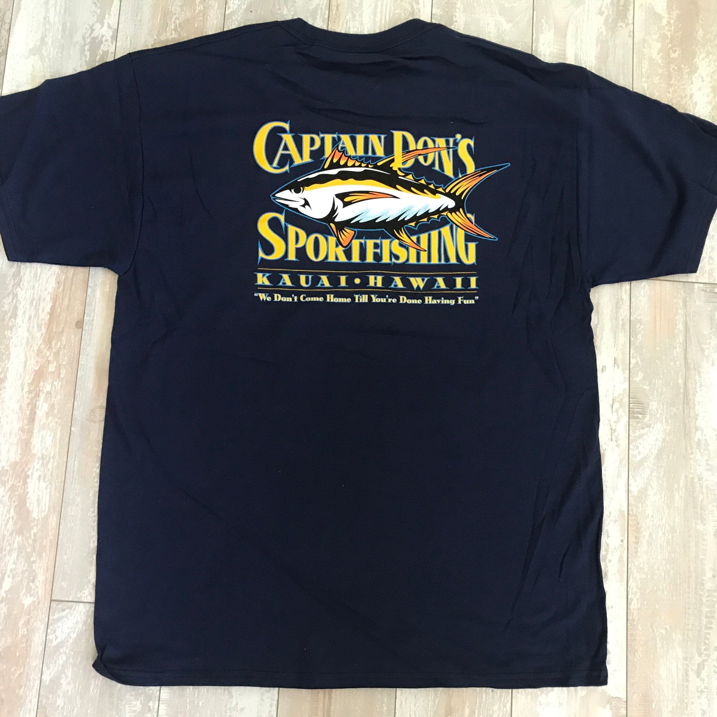 Aloha! Remember your fishing adventure with a t-shirt! Or, give one to a friend who couldn’t make it! Our t-shirts make great presents & souvenirs to commemorate your time in Kauai!